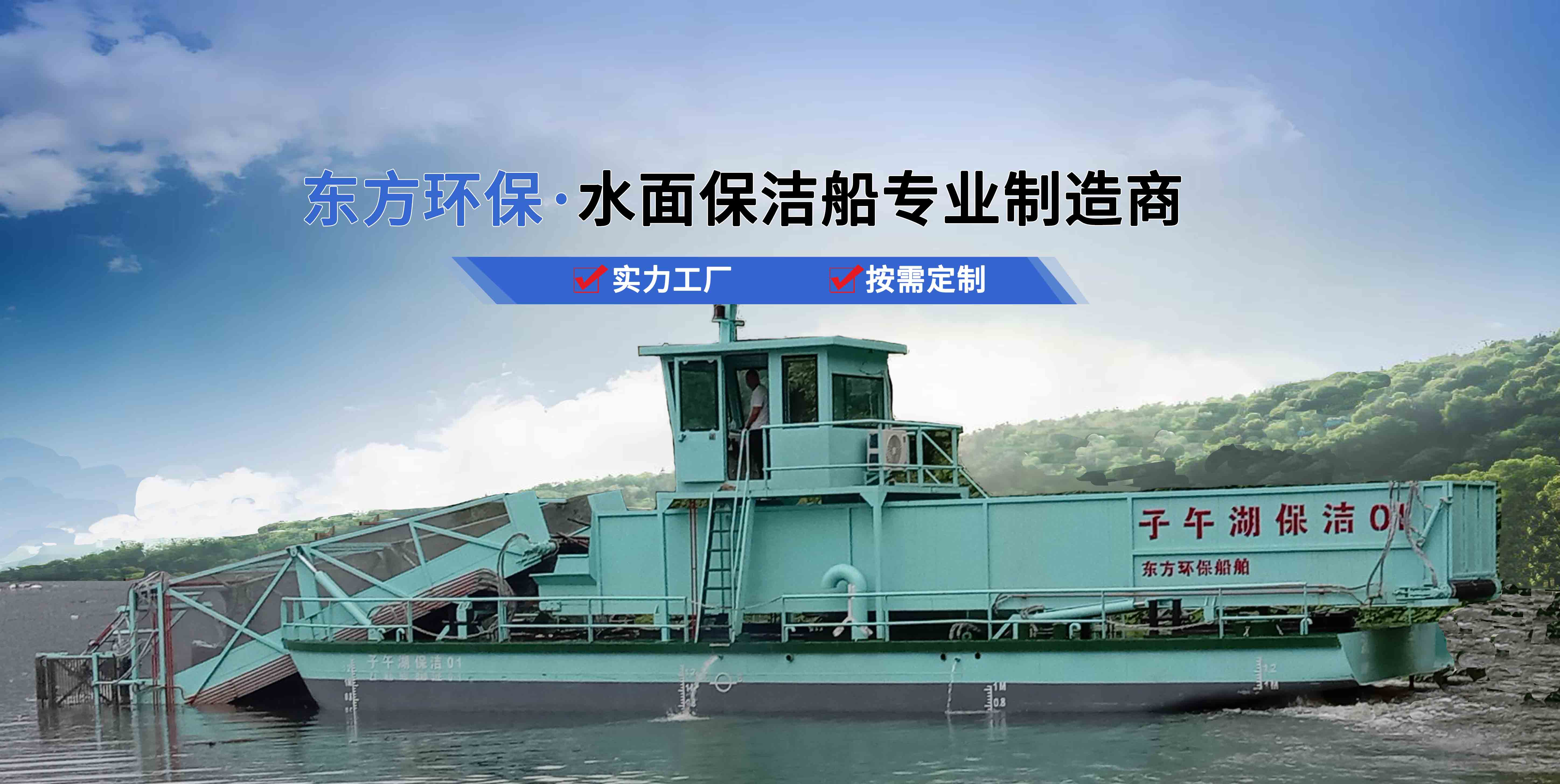 東方船舶是集研發、生產、服務為一體的現代化企業,產品十幾種系列 主營業務:清潔船、水草收割船、垃圾打撈船、水面保潔船等